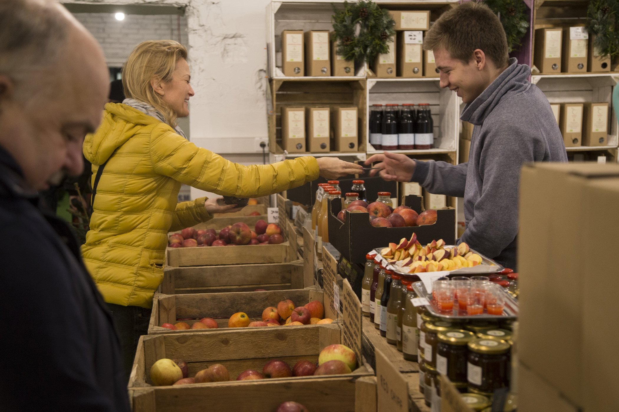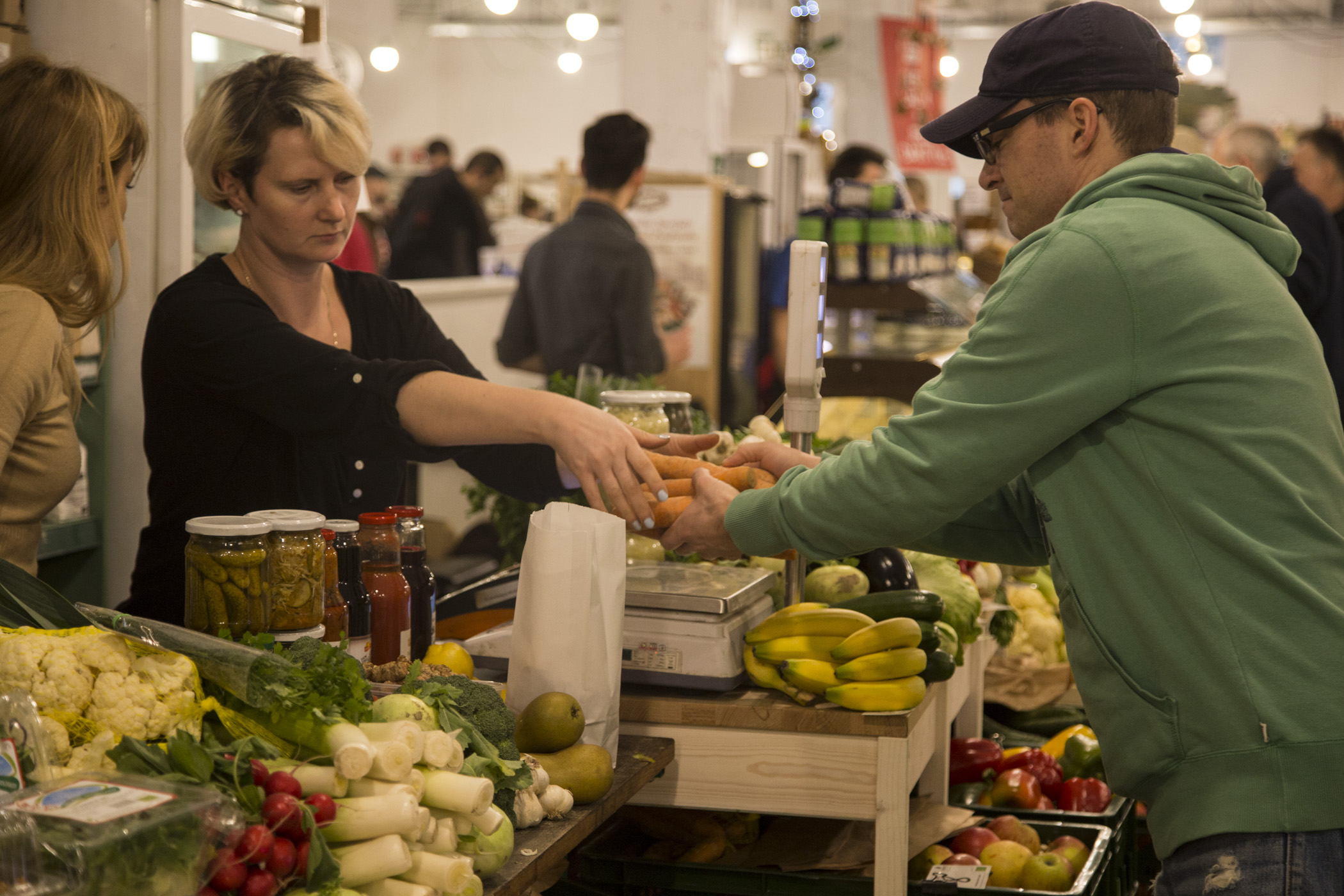 „Zawsze kupuję tu jajka, ryby, owoce morza, dania gotowe, ogórki konserwowe, które smakują nawet lepiej niż te od Mamy, a przede wszystkim warzywa. Wiosną kupuję też świeże tulipany, bo wiem, że pochodzą z polskiej uprawy pod Warszawą” – mówi pani Joanna, mieszkanka Mokotowa. Pani Lidia na BioBazar przyjeżdża z Ursynowa. „Kupuję ryby od chłopaków, którzy mają stoisko na prawo od wejścia, zakwasy od Igora, ekologiczne sery od Filipa, warzywa od Dobrodzieja, wędliny z mangalicy od pana, który sprowadza je z Węgier, i chleb z ziaren od takiej drobnej blondynki z krótkimi włosami i donośnym głosem” – zdradza pani Lidia.